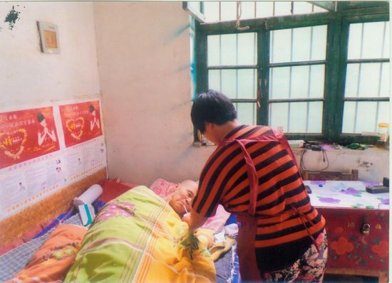 原以為所有的不幸隨著丈夫婆婆的去世而終結(jié),但上蒼還是沒有放過這個可憐的女人。公公又被確診為前列腺癌并終身癱瘓。春菊娘家人剛剛得知其公公患病時心疼女兒,勸女兒把公公送到養(yǎng)老院。親戚鄰居也曾多次勸說她"兒媳婦照顧老公公太不方便了,還是把他送走吧"。但倔強(qiáng)的的春菊說"在我眼里公公就是我親爹,哪有兒女不照顧爹的呢?"她每天幫公公洗臉、洗腳、換洗尿布、擦拭身體。在她的精心照顧下,公公突破了剛患病時醫(yī)生曾說他生命最多不超過兩年的期限,已經(jīng)度過了三個年頭,身體依然硬朗。由于長期過度勞累,春菊也落下了一身病,但是她從沒有給公公和家里人提過。