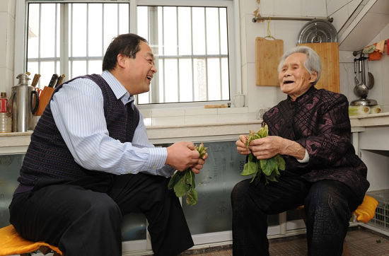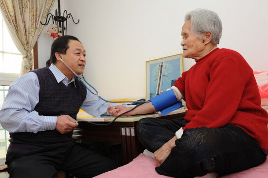 為了隨時了解老人身體狀況,張仁旭學(xué)會了量學(xué)壓、測脈搏,定期為老人檢查身體。