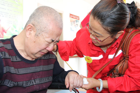 德州康復醫(yī)院,張俊要走了,老人舍不得她,老淚縱橫的抓住張俊的手。