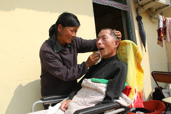 照顧癱瘓病人,煩瑣又重復。每天凌晨四五點,她就起床,開始了一天的忙碌。做飯、照顧孩子吃飯上學。然后再給丈夫擦洗按摩、穿衣喂飯。丈夫的嘴不知道張,只能吃流食,劉德華就把食物用粉碎機打碎,一針管一針管的喂丈夫。丈夫也不知道饑飽,每次喂的時候,劉德華只能靠摸他的肚子感覺他吃沒吃飽。鄰居問她:“你不覺得苦嗎?”有的也勸她趁著年輕趕緊走吧,別再守著這么個廢人了?墒撬睦餂]有絲毫猶豫“他是我的家人,照顧他是應該的,再說,說不定會有奇跡呢!”。