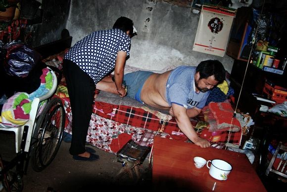文德云不止一次哭過(guò)。但眼淚流過(guò)后,她決定做個(gè)堅(jiān)強(qiáng)的女人,要和殘酷的現(xiàn)實(shí)做最頑強(qiáng)的抗?fàn)?種地、做飯、照顧丈夫和公公、婆婆。地里的農(nóng)活和家里的家務(wù)兩幅重?fù)?dān)都?jí)涸诹松砀卟蛔阋幻琢?又黑又瘦的文德云身上。這擔(dān)子一挑,就是默默的14年。照顧公公婆婆還稍輕點(diǎn),但是照顧高位截癱的丈夫就沒(méi)那么簡(jiǎn)單,丈夫的吃喝拉全部在床上,為了照顧好丈夫,她堅(jiān)持和丈夫住在一個(gè)屋里。由于丈夫邱彥軍把胸部以下沒(méi)有知覺(jué),大小便失禁,大便排不出來(lái),文德云從不嫌臟總是用手扣出來(lái)。