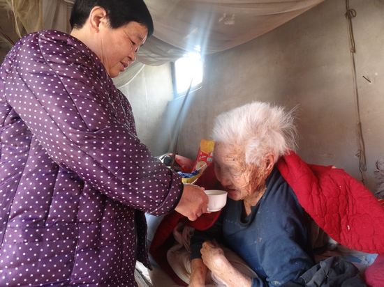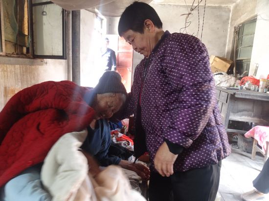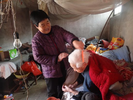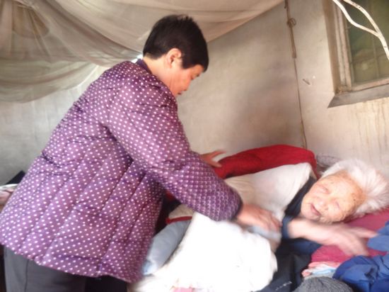 2011年,在閨女家小住的李懷英在晚上上廁所時(shí)不小心摔了一跤,得知情況后,陳宜蘭當(dāng)晚就租車將婆婆送到醫(yī)院進(jìn)行了全面檢查。由于年事已高,以前喜歡自己拄著拐棍出門散步的老人雙腿從此無法自如行走,大小便都需要專人照顧,這無疑增加了陳宜蘭的工作量。已經(jīng)59歲的陳宜蘭,雖然身體很好,但是上了年紀(jì),自己一個(gè)人照顧婆婆也有點(diǎn)照顧不來了,"現(xiàn)在有的時(shí)候我自己都服侍不了她,你像給她換洗床鋪都要喊鄰居家來幫忙兩個(gè)人架著",陳宜蘭說。