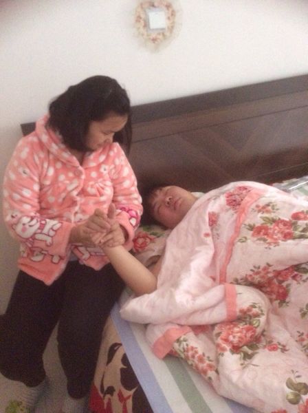 一開始,林濤不會走路,不會說話,吃飯也需要一口一口喂,生活上不能自理,還經(jīng)常煩躁。用邵敏的話說"像個孩子一樣"。邵敏以憐愛的眼神注視著他,為丈夫洗臉、擦身、按摩,教丈夫認識茶幾、電視等,教他說話。晚上睡覺時,她擔心丈夫亂動磕碰到頭部,就抓著他的衣服睡,夜深人靜的時候,她仍不放心,一次一次查看丈夫的狀況。這幾年,她沒睡過一個囫圇覺。為幫助丈夫康復,邵敏堅持陪他做康復治療。林濤恢復期間剛開始學走路時,要四五個人架著,邵敏從后邊"踢"他的腿一下,他就走一步。在這樣艱難地鍛煉中,兩年后,林濤終于可以自己走路了。