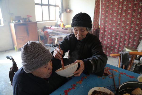每天早晨,高丕英天不亮就起床,為的就是早點給兒媳婦做好飯。老太太雖然腿腳不便,但還是會很用心得給兒媳婦包包子、熬粥喝。在兒媳婦起床前,她特意提前把粥盛出來涼好。兒媳婦起床非常吃力,別說穿衣服了,就是自己從床上爬起來都很困難。高丕英要站在床邊,弓著腰,讓兒媳婦的手擔(dān)在自己的肩上,然后奮力起身。就這樣,她們的一天開始了。兒媳婦完全沒有自己吃飯的能力,像個孩子一樣,必須一口一口的喂。高丕英就一口包子一口粥,拿碗的手經(jīng)常顫抖,灑出來一點就趕緊用抹布擦擦;不小心掉落在桌子上的碎末,就趕緊撿起來吃掉。簡單的早飯,她們吃了半個多小時。兒媳婦吃飽了,老人才開始顫顫巍巍地端起碗。