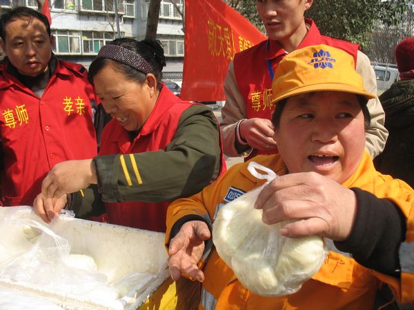 這些年,在長盛北區(qū)環(huán)城公園早起晨練的人們,總能看到有個(gè)穿著印著"學(xué)雷鋒小組"的紅色背心的阿姨在認(rèn)真地打掃衛(wèi)生,特別是冬天下雪后,在社區(qū)醫(yī)院門口、學(xué)校門口、社區(qū)廣場及馬路公交站牌也經(jīng)常發(fā)現(xiàn)她的身影。有些過路的市民停下來和她聊聊,在得知她不是環(huán)衛(wèi)工是雷鋒小組的成員的時(shí)候,他們紛紛豎起大拇指。許多市民在她的帶動下,也主動自覺地幫助撿起地上的垃圾、雜物,加入到維護(hù)市容市貌的行動中。