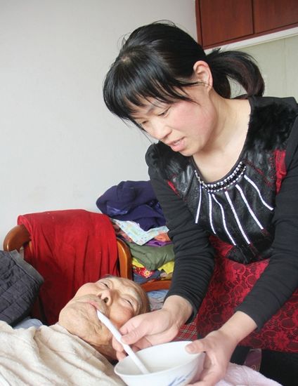 然而,不幸又再次襲來。2011年,鄧愛敏的公公因患腦血栓,失去了自理能力。本來就有嚴(yán)重哮喘病的婆婆連做飯都不能,更別說照顧病人了。于是,照顧公公的擔(dān)子也落在了鄧愛敏身上。她每天在忙著做好家務(wù)、照顧好婆婆和丈夫的同時(shí),無微不至地照顧著公公。洗頭、理發(fā)、捶背、剪指甲、接大小便……每一樣都做得一絲不茍。4年多來,臥床的公公從來沒生過褥瘡。
