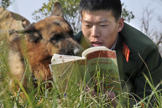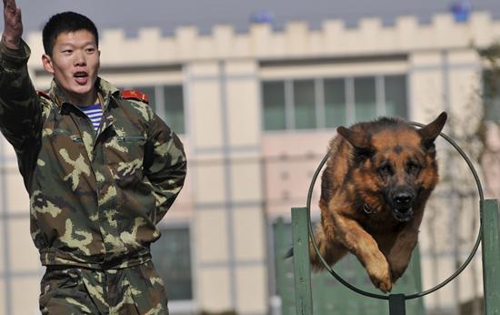 張楠在武警臨沂支隊訓(xùn)練警犬