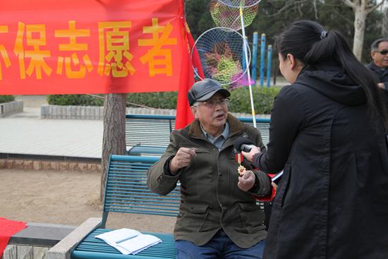 陳一陽1973年時(shí)借調(diào)到淄博市環(huán)辦,主要任務(wù)是豬龍河治污調(diào)查,有李樹玉、王家論及陳一陽3人,用了大約一年的時(shí)間以市的名義向中央寫出報(bào)告,中央領(lǐng)導(dǎo)批示給淄博環(huán)境治理物資如水泥、鋼材、設(shè)備等價(jià)值約2000多萬元,用于解決污染問題。經(jīng)過治理,豬龍河水質(zhì)有所改善。后來陳一陽一直在環(huán)保工作的第一線,為了淄博的環(huán)保事業(yè)奮斗和付出。在1985年離職休養(yǎng)后,不忘老本行,依然關(guān)心著環(huán)保事業(yè)的發(fā)展,依然支持一線環(huán)保工作者的工作。經(jīng)常見到他在公園里為市民發(fā)放印制成冊的《中華人民共和國環(huán)境保護(hù)法》和《公眾環(huán)境空氣質(zhì)量指標(biāo)科普宣傳手冊》的身影,經(jīng)常聽到他對市民宣講低碳出行、不亂扔垃圾、節(jié)約用水等環(huán)保知識。陳一陽經(jīng)常順著河流巡查,利用兩個(gè)多月的時(shí)間,發(fā)動(dòng)以前的老戰(zhàn)友、老同事、老鄰居,成立了淄博市離退休環(huán)保志愿者大隊(duì),他任大隊(duì)長,環(huán)保志愿大隊(duì)分為9個(gè)小分隊(duì),每個(gè)志愿者都登記造冊,陳一陽還自費(fèi)印制了隊(duì)旗、分隊(duì)旗、志愿者袖標(biāo)。目前已有39位老人加入了環(huán)保志愿者大隊(duì),他們中年齡最小的60歲,最大的已經(jīng)86歲。陳一陽說:“我們主要任務(wù)有三個(gè),一是監(jiān)督是否有企業(yè)存在偷排行為,其次是在力所能及的范圍內(nèi)清潔河道,最后就是搞好環(huán)保宣傳。按照計(jì)劃,我們每周活動(dòng)一次,發(fā)現(xiàn)問題,及時(shí)反饋給環(huán)保部門!苯M成這個(gè)隊(duì)伍的主要目的是通過老年人的實(shí)際行動(dòng),感召廣大居民增強(qiáng)環(huán)保意識和志愿服務(wù)意識,共同保護(hù)好淄博市的河道衛(wèi)生,維護(hù)好淄博市的城市形象,讓更多的人參與到生態(tài)淄博建設(shè)中來。行走在豬龍河的岸邊,看著河水清澈、兩岸繁花盛開,陳一陽覺得很幸福、很滿足。