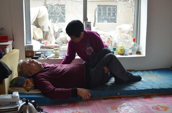 從丈夫刁世勤癱瘓,到現(xiàn)在已經(jīng)過去了40年,在這40年里,王業(yè)秀無微不至地照顧著丈夫,由于丈夫無法活動(dòng),她每天晚上都要起床好幾次給丈夫翻身,一旦發(fā)現(xiàn)丈夫不舒服,就馬上起床過來查看。這些年她還學(xué)會(huì)了打針、輸液、推拿和按摩甚至理發(fā)。王業(yè)秀已經(jīng)熟練掌握了基本的護(hù)理知識(shí),定期給丈夫按摩、推拿,陪他聊天解悶。