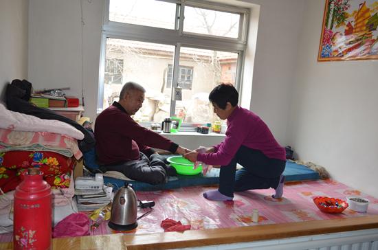 王業(yè)秀悉心照顧癱瘓?jiān)诖驳恼煞?/p>