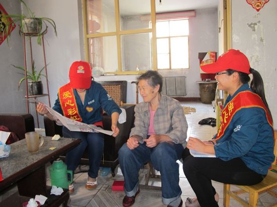 萊蕪公司愛(ài)心彩虹使者為孤寡老人讀報(bào)解悶