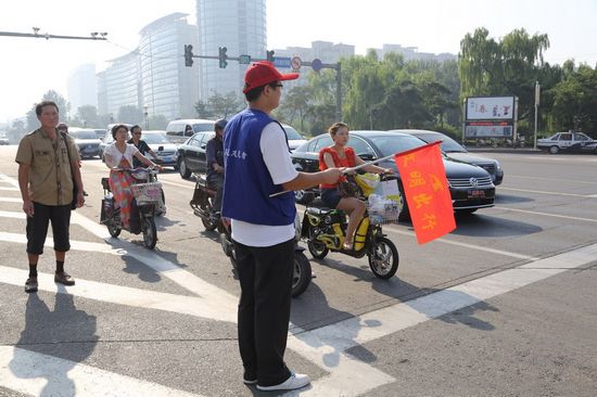 8月20日,萊蕪供電公司4名“愛(ài)心彩虹”青年志愿者頭戴小紅帽,身著藍(lán)馬甲,在長(zhǎng)勺路與魯中大街路口,勸阻不文明行為,協(xié)助交警順暢交通。