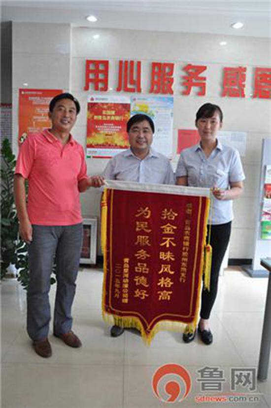 10月8日,為了表達(dá)謝意,焦先生趕制一面錦旗來(lái)到銀行,親自送到李征的手中!斑@是我們應(yīng)該做的,以后取款時(shí)要細(xì)心點(diǎn)。”當(dāng)焦先生拿出1000元現(xiàn)金表示感謝,被李征婉言謝絕。青島農(nóng)商行膠州東路支行負(fù)責(zé)人說(shuō),平日里替粗心客戶保管落下的物品,都是常有的事情,小到水果食品、大到房產(chǎn)證、現(xiàn)金銀行卡,大家都會(huì)盡力查找客戶聯(lián)系方式尋找失主,拾金不昧已經(jīng)變成了一種習(xí)慣。對(duì)于李征拾金不昧的精神,農(nóng)商銀行內(nèi)部將為她申報(bào)“最美員工”,并給予一定的物質(zhì)獎(jiǎng)勵(lì)。李征表示:“這是我們農(nóng)商銀行的優(yōu)良傳統(tǒng),始終沒(méi)有忘記自己是農(nóng)商行的員工。這是我應(yīng)該做的,下次碰到這樣的事情我還會(huì)這么做,為社會(huì)為人民群眾多做貢獻(xiàn)!