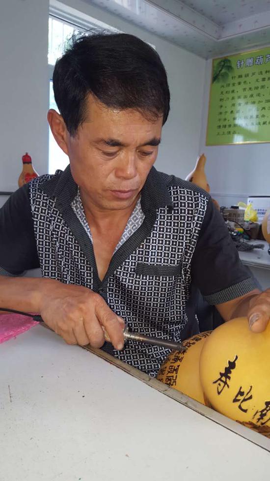 郝洪燃在雕刻葫蘆