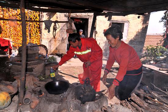 在老人們的記憶里,從曹永海負(fù)責(zé)楊集庵村供電開始,油鹽醬醋等這些日用品從沒(méi)漲過(guò)價(jià),電費(fèi)也從來(lái)不催促著交。但他們心里都明白,都是電工“兒子”為他們付了。所以每次曹永海到村里,老人們都會(huì)先問(wèn)“到了交電費(fèi)的時(shí)候了嗎?”而得到的答復(fù)總是“還沒(méi)到,不用急!倍看尾苡篮kx開時(shí),老人們都會(huì)將從山里摘的果子,地里種的地瓜、花生等塞給“兒子”,但曹永海最多嘗一口,從來(lái)不帶走。