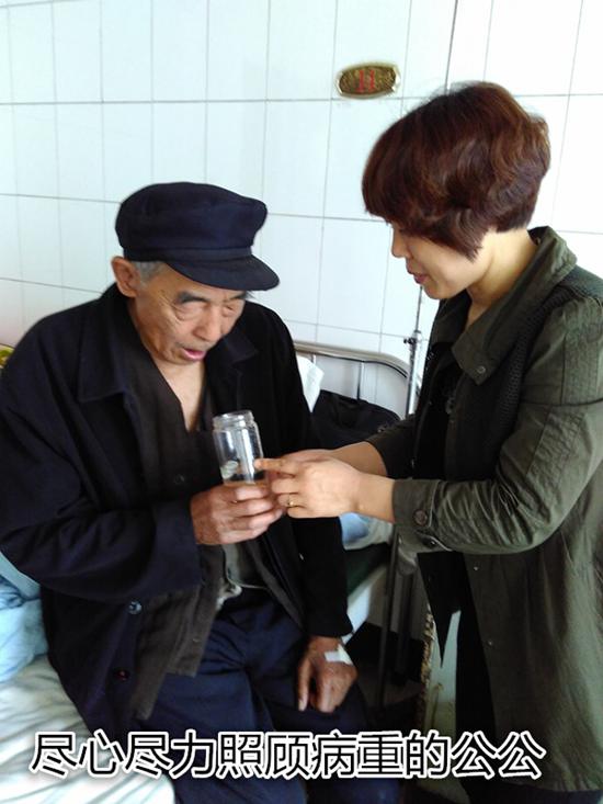 “我和老伴現(xiàn)在都快80歲了,這兩年老頭子身體大不如從前,走幾步路就喘不過來,還經(jīng)常發(fā)脾氣,他胃口差需要多餐,慶霞每次都是問好吃什么再去做?杉幢闶沁@樣,只要每次老頭子吃一點(diǎn)她也很高興。前段時(shí)間老頭子又病了在醫(yī)院做了手術(shù),我本身也有心臟病,慶霞不放心光讓我陪著。她每天忙完學(xué)校的工作,就請(qǐng)假再去醫(yī)院看護(hù)。中午還要回家做飯,端給癱坐在家的哥哥,照顧完他接著再去醫(yī)院送飯!碧崞饛垜c霞,她的婆婆官作英滿懷疼惜和愧疚地抹著眼淚說道。