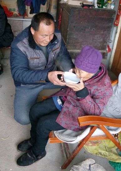 兩位老人雖然身體不好,但從不愿給兒女增添太多麻煩,F(xiàn)在老人與大兒子李文儒住在一起,兩個女兒和小兒子也幾乎每天都會來看望老人。入冬以后,老人身體愈加不好,兒女們來的就更勤了。前幾天,兩位老人同時在鎮(zhèn)醫(yī)院住院,倆兒子在北樓照顧父親,倆兒媳就在南樓照顧母親,醫(yī)院的病友都以為她們是老人的女兒。