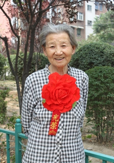 嚴(yán)靜,女,中共黨員,1931年2月出生,濟(jì)南市天橋區(qū)工人新村北村畢家洼西社區(qū)居民。
