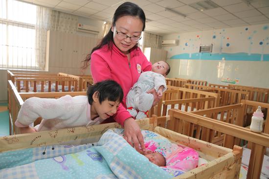 有人覺得,整天給孩子擦屎擦尿,肯定是又臟又累,但位霞卻一直每天重復(fù)著這樣的工作。十多年里,她已經(jīng)習(xí)慣了這樣的照顧。2013年,福利院接收了一名患有先天性梅毒的女嬰,因?yàn)樗难杭叭魏畏置谖锒季哂袀魅拘,所以福利院?duì)她進(jìn)行了隔離養(yǎng)育。第一次接觸這種傳染性的孩子,位霞心里難免有些緊張,也有些抵觸!暗强粗矍斑@個(gè)只有幾個(gè)月大的孩子,兩只眼睛向你望過來、對(duì)你笑的時(shí)候,還是忍不住伸手去摸摸她!蔽幌颊f,在她心里,孩子是無辜的,總不能看著她挨餓,拉了尿了總不能放著不管,如果自己都不能以身作則,那又怎么能去說服別人?最終,孩子經(jīng)過積極地治療,在福利院的精心照顧下,已經(jīng)會(huì)跑會(huì)叫媽媽了。看著孩子臉上的笑容,位霞也感到由衷的欣慰。