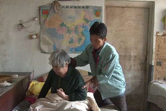 沒過兩三年,妻子的病情又有些加重,當(dāng)時因高血壓治療的不及時,妻子得了腦血栓,當(dāng)時她左半邊身子已經(jīng)完全不聽使喚,生活也不能自理,只能躺在床上等待趙振貴的照顧。趙振貴不僅要照顧妻子的吃、喝、拉、撒,還要洗衣做飯、換洗被褥,做些農(nóng)活。趙振貴每天都無微不至的照顧著自己的妻子,這一照顧,就是12年。