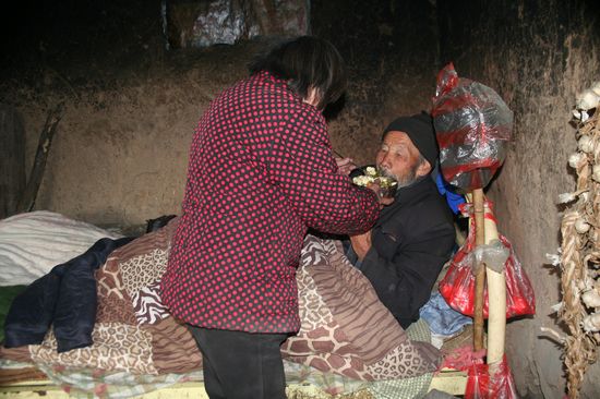 日子雖然窮點,但只要家人都健健康康的,李安玲就很知足,送走了婆婆,李安玲肩上的擔(dān)子本來可以暫時輕一點,但是上天好像偏偏要故意考驗李安玲的孝心。2004年8月初,公公吳之田去艾曲趕集的路上發(fā)生了車禍,住進了縣人民醫(yī)院。對于大字不識幾個的農(nóng)家婦女來說,單只是上樓下樓、叫醫(yī)生打針換藥、取單拿藥就夠讓人崩潰了,何況她自己的眼睛還看不太清楚。但是這一切李安玲沒有絲毫的抱怨,堅強地獨自承擔(dān)下來。2004年12月公公出院回到家后就臥床不起。上要照顧生活不能自理的公公,下要照顧年幼的孩子,還得照顧有精神病的丈夫,李安玲白天下地干農(nóng)活、黑天洗衣做飯,生活的重擔(dān)絲毫沒有壓垮李安玲,面對困難她變得更加堅強勇敢。
