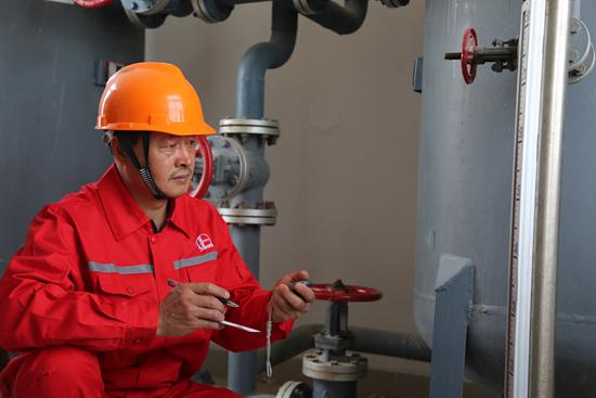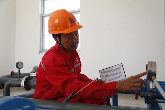 王全忠總是用嚴(yán)謹(jǐn)負(fù)責(zé)的態(tài)度對(duì)待原油計(jì)量工作,經(jīng)他手的數(shù)據(jù)都是準(zhǔn)確的(圖為王全忠量油)