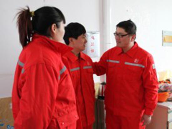 呂利群和班內(nèi)員工一起談心,舒緩工作壓力,調(diào)整情緒。
