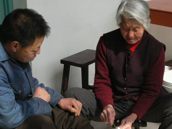 金奎花的小叔子今年已經(jīng)59歲,1958年11月,19歲的金奎花與丈夫結婚的時候,小叔子才三歲,先天智障,婆婆是小腳女人,不能外出干活。金奎花婚后一直與公婆生活在一起,沒有分家。丈夫是個木匠,要外出干活賺錢養(yǎng)家,家里一攤子事里里外外都靠她支撐。小叔子小的時候,身體本來就弱,還時常犯癲癇的毛病,有一年犯病發(fā)瘋,非常嚴重,多虧金奎花背著他步行十多里地到醫(yī)院求治,總算撿回一條命?粗β档慕鹂,婆婆心疼地說:“哎,你這是撿回個累贅!