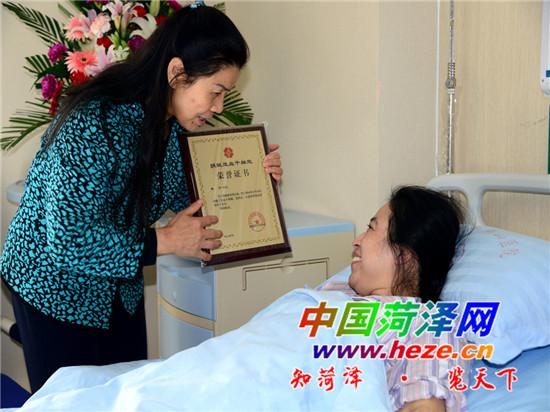 痛苦面前張寧沒(méi)有絲毫恐懼和畏難,救死扶傷的大愛(ài)之心使她忘記疼痛!白约旱母冻鰮Q來(lái)一個(gè)生命的延續(xù),對(duì)我來(lái)說(shuō)這是最大的幸福。”張寧的善舉得到社會(huì)各界的關(guān)注,期間山東省紅十字會(huì)及濟(jì)南市紅十字會(huì)的領(lǐng)導(dǎo)曾多次看望慰問(wèn)并送去了“捐獻(xiàn)造血干細(xì)胞”榮譽(yù)證書。