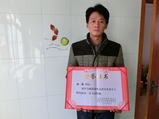 叢毅,男,1983年1月出生,乳山市大孤山鎮(zhèn)水井村村民。叢毅是一名地地道道的農(nóng)村漢子,2015年10月為了保護(hù)村民財產(chǎn)安全,他赤手空拳勇斗盜賊,最后在公安民警的協(xié)助下成功擒獲盜賊。