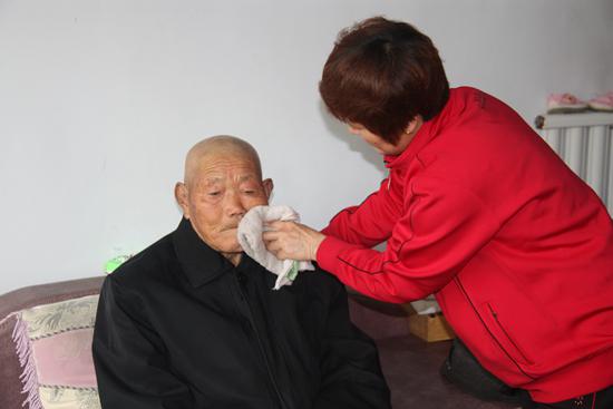 今年已90歲高齡的尚禮乾老人是位抗戰(zhàn)老兵,先后參加了濟(jì)南戰(zhàn)役、淮海戰(zhàn)役、渡江戰(zhàn)役等。后來,在解放平川島戰(zhàn)役中,老人負(fù)傷致殘。1950年復(fù)員回家,沒有子女的他一直獨(dú)自生活。1990年,牛國紅嫁到大尚村尚金忠家。在得知尚禮乾無依無靠后,她主動(dòng)要求把老人接到自己家,開始了長達(dá)二十四年的悉心照顧。“我伯父一輩子為解放戰(zhàn)爭流血流汗,還負(fù)了傷,我不能讓他老了孤苦伶仃一個(gè)人。”牛國紅滿含淚水的說。