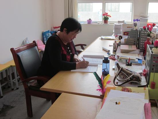 2008年秋收,莊會(huì)茹在地里干農(nóng)活,身子突然不穩(wěn)坐進(jìn)深溝,摔傷了胯骨。家人、同事都勸她在家休養(yǎng),但她堅(jiān)持讓愛人每天用車?yán)ド习,只為了不耽誤給孩子們上課。晚上回家,她還一邊打吊瓶,一邊給孩子們批改作業(yè)。