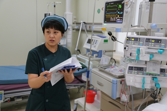 作為急診科護(hù)士長,于燕平說,她最怕的就是在家里電話響,可是怕什么往往就來什么。2014年2月的一天清晨,急促的電話鈴聲再次響起,一名意識(shí)模糊的老人躺在路邊需急救,120迅速出動(dòng)的同時(shí)也電話通知了她。接電話后她來不及呵護(hù)正在發(fā)高燒的孩子,第一時(shí)間趕到急診查看病人的情況。老人沒有任何有效證件及聯(lián)系方式,曾經(jīng)做過顱腦手術(shù),意識(shí)不清、非常煩躁,生命體征很不穩(wěn)定……在不明病因的情況下,是不能使用鎮(zhèn)靜劑的,這給護(hù)理工作帶來了很大難度。為了保證病人的安全,她安排專人日夜守護(hù)。休克的病人容易大小便失禁,老人來的時(shí)候惡臭熏天、狼狽不堪……于燕平像往常一樣挽起袖子用最嫻熟的動(dòng)作為老人輕輕擦洗,換上了干凈的病號(hào)服。她還自己出錢買來可口的飯菜,給老人鼻飼、翻身、拍背、擦臉、刮胡須、導(dǎo)尿……她憑借豐厚扎實(shí)的護(hù)理知識(shí)對(duì)病人病情做出精準(zhǔn)的判斷,盡早安排醫(yī)護(hù)人員陪送老人入住神經(jīng)外科,為老人的及時(shí)救治贏得了寶貴時(shí)間。兩天后,通過110的協(xié)助,遠(yuǎn)在濰坊的家屬找到了醫(yī)院,看到親人的病情得到救治,更受到無微不至的照顧,家屬激動(dòng)地流著淚,拉著她的手久久不放:“你們真好,真好……”家屬執(zhí)意留下于燕平的聯(lián)系方式,說以后就是親戚了,到現(xiàn)在也經(jīng)常打電話互相問候。人間冷暖,貴在真情,同事們說她很有愛,她說:“來到醫(yī)院的每一位病人,我們要做的第一件事就是讓病人感受到我們是和他們站在同一條戰(zhàn)線上,讓病人相信我們懷著同樣的心情在為他們的健康努力!”她就是這樣把工作當(dāng)成生活,把職責(zé)當(dāng)成信仰!