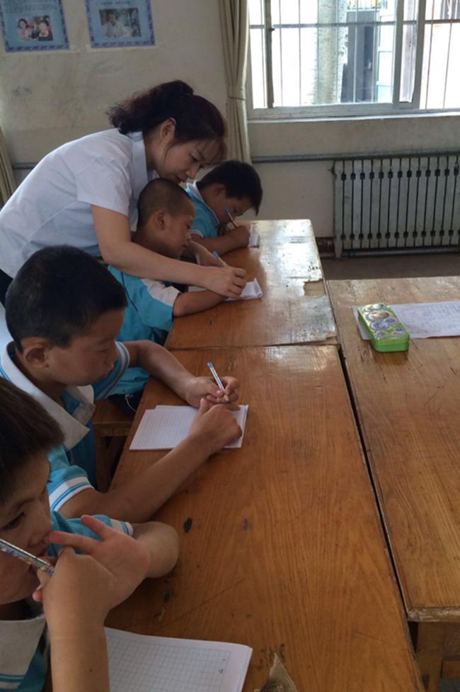 于青先從教給孩子們洗手開始。她做示范,學生模仿。有的拍、有的攪、有的潑,水灑一地不說,還濺濕了衣服,先后教了幾遍,學生就是學不會。怎么辦呢?只能手把手了。幾番下來,還真有幾個學生學的像了樣,這讓于青心里很欣慰。在接下來的教學當中,她又逐漸教給他們洗臉、梳頭、辨認人民幣等生活常識,也教給他們識字、讀圖等文化知識。于青還把這種愛傾注到了學生的生活中,給他們剪指甲,換衣服,從家里帶來零食、水杯、衣服,給他們吃、給他們用……看著孩子們干凈了,吃著零食笑了,識字了,她是發(fā)自內心的高興。