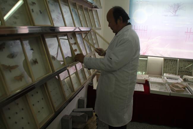 逮到的昆蟲幼蟲還要及時處理,加工成標本。制作一個昆蟲標本,從毒殺后的昆蟲抽出體液,烘干、整姿、定型、封膠等,要經(jīng)過八九道工序。張忠民親自上陣,福爾馬林、二甲苯、苯酚等有毒試劑,熏得頭暈眼花嘔吐不止,他從不叫一聲苦。
