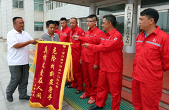 7月26日,東營市河口區(qū)新戶鎮(zhèn)九傾村村民將一面寫有“危險時刻顯身手、真情大愛在人間”的錦旗送到河口采油廠井下作業(yè)大隊作業(yè)12隊三班員工手里。大隊黨委對他們的見義勇為行為給予了高度評價,并獎勵1000元。