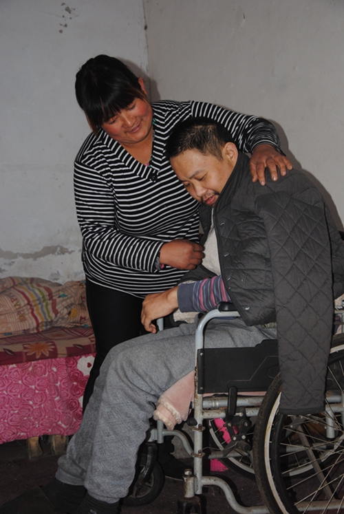 如今,丈夫雖然有著清醒的意識(shí),但是生活依然不能自理。每天,鄭作霞除了攤煎餅掙錢補(bǔ)貼家用以及清還債務(wù)外,其余的時(shí)間都用來(lái)照顧丈夫,一日三餐,從床上把他抱到沙發(fā)上或者輪椅上,陪丈夫說(shuō)話,給他按摩腿。丈夫喬鋒雖然不能說(shuō)話,但意識(shí)非常清醒。有時(shí)看到妻子忙這忙那的,他會(huì)發(fā)出“嗯、嗯”的聲音,手指指向妻子,仿佛在招呼妻子過(guò)來(lái)坐,當(dāng)鄭作霞放下手上的活坐在丈夫身邊時(shí),丈夫就會(huì)輕輕地一只手拉起妻子的手,另一只手輕輕撫摸妻子的手以表示心疼,每當(dāng)這個(gè)時(shí)候,鄭作霞就覺(jué)得自己付出的一切是值得的。