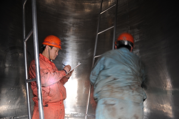 石風(fēng)濤將滿腔熱情完全投入這一工作之中。他把每一次現(xiàn)場檢驗都作為寶貴的實踐機會。每次企業(yè)里的人陪著老石看設(shè)備,都“頭痛”他的仔細勁。通過大量的現(xiàn)場實踐和琢磨,老石形成了自己的一套發(fā)現(xiàn)安全隱患的工作方法。在20余次的大型容器檢驗工作中,老石發(fā)現(xiàn)大量事故隱患,有效避免了重大安全事故的發(fā)生。