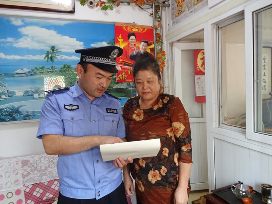 高穎奇(左)深入轄區(qū)旅館檢查住宿登記情況