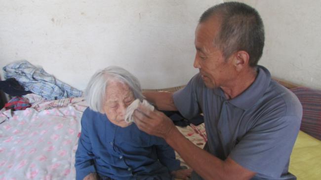 “有天我從地里干活回來,她就開始神志不清,誰也不認(rèn)識了。”晉學(xué)緒說,2010年,岳母開始小腦萎縮,癱瘓?jiān)诖?完全喪失了自理能力。吃飯、穿衣、上廁所,都要靠我來幫她!奔(xì)心的晉學(xué)緒邊學(xué)邊做,把老人照顧得非常周到。