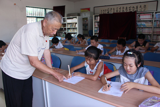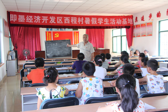 在西程哥莊村,江敦仁負(fù)責(zé)“關(guān)心下一代”工作委員會(huì)的相關(guān)工作。退休前江敦仁任龍山葛村中學(xué)校長(zhǎng),一生從事教育,熱愛(ài)教育。退休后,本著對(duì)工作的熱情,他向村委申請(qǐng)開(kāi)辦暑假學(xué)生活動(dòng)基地,主要針對(duì)2—6年級(jí)的學(xué)生免費(fèi)授課,村委對(duì)他的行為大力支持,為他單獨(dú)開(kāi)辟出一間教室,桌椅板凳配備齊全。活動(dòng)基地的課程內(nèi)容豐富多彩,涵蓋了文化知識(shí)、中西音樂(lè)、美術(shù)欣賞等,所有的課程都由他親自授課,而且這一堅(jiān)持就是十多年!起初有人不理解,半信半疑地說(shuō):“你傻呀!這么大年紀(jì),還管這么多閑事!睂(duì)此,江敦仁總是一笑置之,有人追問(wèn)起來(lái),他才笑著說(shuō):“我不忍心看到村里的孩子在暑假里荒廢學(xué)業(yè),更擔(dān)心學(xué)生沒(méi)有人看著,到河里玩耍出事!焙(jiǎn)單質(zhì)樸的回答,讓人們看到了他的良苦用心。2016年,江敦仁正滿(mǎn)80歲,假期在活動(dòng)基地上課的孩子也達(dá)到80人左右。除了日常授課,他還經(jīng)常組織學(xué)生開(kāi)展各項(xiàng)豐富多彩的活動(dòng),比如帶領(lǐng)孩子們參觀(guān)古城亨達(dá)孝親文化園,參觀(guān)周浩然烈士基地等等,對(duì)學(xué)生進(jìn)行愛(ài)黨、愛(ài)國(guó)、愛(ài)社會(huì)主義教育,進(jìn)行法制、安全和革命傳統(tǒng)教育。通過(guò)假期活動(dòng),學(xué)生學(xué)得了知識(shí),增強(qiáng)了才干,提高了素質(zhì),又保證了安全,收到了良好的效果。