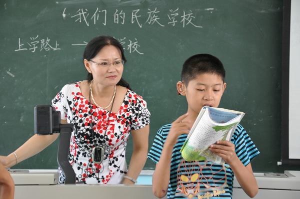 聽障兒童教學(xué)艱辛的,每教一個(gè)音節(jié),都要讓學(xué)生細(xì)致地觀察老師發(fā)音的舌位、唇形的變化、觸摸聲帶的震動(dòng),感受氣流的強(qiáng)弱,一天三四節(jié)課,她常頭腦發(fā)脹;她曾為校外一個(gè)極重度聾的兩歲女孩進(jìn)行語,反復(fù)地聽辨,不停地講解,半年沒發(fā)音的她突然說這是小鳥叫,這是火車的聲音……四年后這個(gè)小女孩順利進(jìn)入普通學(xué)校就讀。他在教學(xué)中發(fā)現(xiàn)了“課內(nèi)情景再現(xiàn)—課外鏈接生活”教學(xué)法,先后讓100多名學(xué)生開口說話、執(zhí)筆寫文,將一個(gè)又一個(gè)“星星”摘下來,送給了他們的父母。