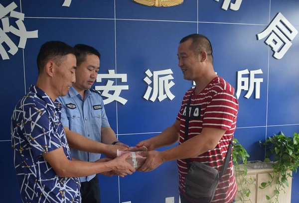 稍事平靜,蘇先生從布袋里拿出8000元現(xiàn)金,對好心的黑師傅表示感謝,卻被他婉言拒絕了。黑師傅說:“丟了這么多錢,我想你一定很著急,就想快點把錢送回你手里,大家掙錢都不容易!睒銓嵉脑捳Z沒有太多修飾,但足以讓外地來膠的蘇先生感動一輩子!
