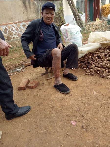 火滅了,大伙紛紛上前詢問葛寶雙的傷勢。為了不讓大家擔心,葛寶雙忍住疼痛,跟個沒事人一樣離開現(xiàn)場,來到自己的老屋門口,等他打開鎖進了屋,就再也忍不住了,一屁股坐在地上!爱敃r感覺被燒傷的部位說不出的難受,我趕緊用水沖洗了一下,然后給兒子打電話!备饘氹p說。