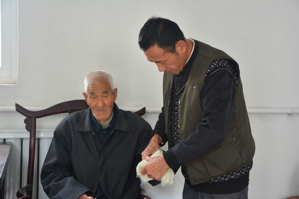 蔣元岱是安站鎮(zhèn)大董村一位普通的農(nóng)民,叔叔蔣太路早年參加抗日戰(zhàn)爭(zhēng),后回到家靠務(wù)農(nóng)為生,無(wú)兒無(wú)女無(wú)固定的經(jīng)濟(jì)來(lái)源,蔣元岱作為大家庭中的老大哥,在與妻子商量后決定,將叔父接到自己的家中奉養(yǎng),轉(zhuǎn)眼四十年過(guò)去了,三個(gè)孩子已成家立業(yè),蔣元岱老兩口年過(guò)六旬,每日三餐,洗衣、喂藥悉心照顧著耄耋之年的叔父。