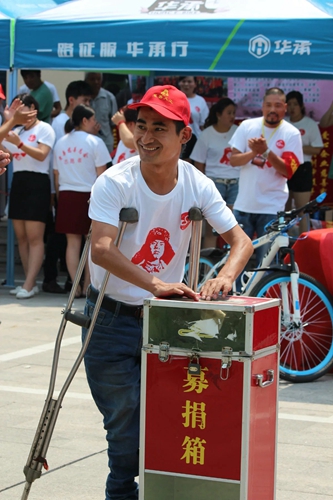 一個人力量是微不足道的,而需要幫助的人又是那樣多,如果把周圍志同道合的人都聚集在一起,大家組成一個團隊,那豈不是更能發(fā)揮最大的作用嘛?他是那么想,也是那么做的。經(jīng)過前期籌劃及不懈的努力,2015年8月26日,費縣點點義工胡陽分會正式成立,共注冊義工39人,義工群成員發(fā)展到近300人。薛莊鎮(zhèn)盤石村的孔祥生原本有一個幸福的家庭,天有不測風(fēng)云,他兒子六個月的時候查出患先天性肺炎,為給孩子治療花費了30多萬,掏空了原本就不富裕家庭的所有積蓄。福無雙至禍不單行,孔祥生又查出了白血病。為了讓這個家庭重新燃起生活的希望,曹守家積極響應(yīng)義工總會號召,組織分會義工走家串戶進行宣傳和募捐。在10天的時間里,他拄著雙拐頂烈日,冒酷暑,走遍了胡陽鎮(zhèn)的大街小巷,沒有請過一天假;顒咏Y(jié)束時,他和他的志愿團隊共募集愛心善款3萬余元。