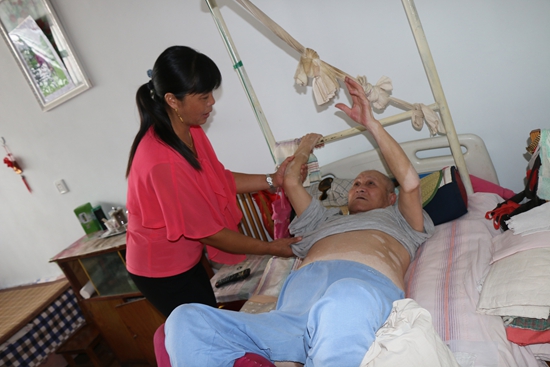 然而,天有不測(cè)風(fēng)云。2010年尹延蕓的公公在縣城打工時(shí),被突如其來(lái)的一輛汽車撞出10多米,經(jīng)過積極搶救,最終腰部以下全部癱瘓。住院那段時(shí)間,老人吃夠了醫(yī)院食堂的飯,尹延蕓就給公公包餃子、包餛飩,換著花樣準(zhǔn)備飯菜;老人一時(shí)間接受不了自己癱瘓的事實(shí),她就給老人讀報(bào)紙,挑一些新鮮有趣的事情,幫助老人緩解情緒;眼看著老人在病床上痛苦卻不能幫忙分擔(dān),她就按照醫(yī)生說的每三個(gè)小時(shí)為公公翻身、擦肩、按摩腿腳。