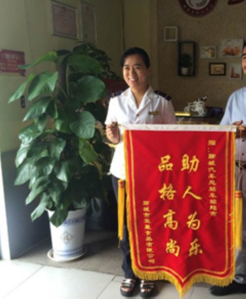 一切安頓好后,劉站長和黃主任回家時已經(jīng)是晚上9:00。這時小文的愛人也打來了感謝電話,說小文是美尼爾綜合癥犯了,多虧了黃主任及時趕到,他們一家十分感激。第二天,亞星食品公司的經(jīng)理專門帶著“助人為樂 品德高尚”的錦旗來到總站,代表亞星公司感謝總站的熱情相助,并對總站兩位同志友好善良、熱心助人的優(yōu)秀品質(zhì)稱贊不已。
