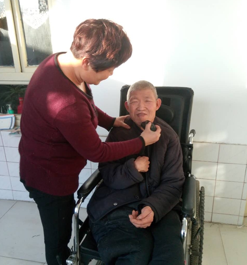 25年前,王素英嫁到了這個本不富裕的家庭,大伯哥哥患有腦癱后遺癥,需要長期照顧,王素英就和丈夫一邊種地一邊在工廠打工掙錢,雖然辛苦卻很幸福,婚后不久,他們有了一個可愛的女兒。王素英是一個好強(qiáng)的人,為了改變家庭的困境她與丈夫東借西湊加貸款辦起一個小型加工廠,小兩口不怕苦不怕累,沒白沒黑的干,通過幾年的努力打拼日子總算一天比一天好了起來。然而,天有不測風(fēng)云,婆婆有一天突然昏倒,王素英發(fā)現(xiàn)后立即找車把婆婆送到醫(yī)院,經(jīng)過醫(yī)生檢查確定是腦中風(fēng),在醫(yī)院王素英樓上樓下地忙活,一直到婆婆病情穩(wěn)定下來才喘了口氣。醫(yī)院里有病人,家里有年幼的女兒和需要照看的大伯哥哥,王素英就兩頭跑,忙完家里忙醫(yī)院,有時候累得一坐下就能睡著。但是她寧愿自個兒累一些,也不讓婆婆、大伯哥哥還有閨女受委屈。經(jīng)過醫(yī)生全力搶救,婆婆的命是保住了,從此只能躺在床上讓人伺候,老人的心情可想而知。為了讓婆婆恢復(fù)的好一些,王素英省吃儉用為婆婆買了輛輪椅,不管平時怎么忙,她都會抽出時間經(jīng)常推老人到屋外曬太陽,呼吸新鮮空氣,陪老人聊天解悶,從交談中了解老人的思想動態(tài),每當(dāng)老人有什么不開心的事情時她都會想盡辦法耐心開解,為老人送上一顆“開心果”。一下子,家里有了兩個需要照看的病人,既要照顧老婆婆和大伯哥哥,也要照顧年幼的女兒。早上起來先做完早飯伺候婆婆和大伯哥哥吃完飯,打掃好衛(wèi)生,再到廠里看看,然后回到家里照顧病人,就這樣她往返家里和廠里,王素英肩上的擔(dān)子越來越重,卻從沒見她叫苦叫累。
