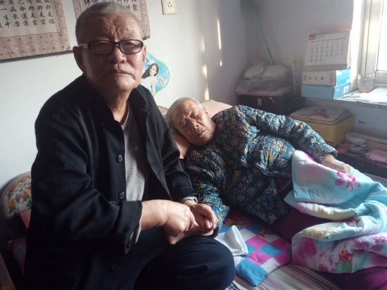 趙俊民18歲當(dāng)兵, 22歲轉(zhuǎn)業(yè),同年迎娶了鄰村的孫麗玉!敖Y(jié)婚時,我們娘家人不怎么愿意,說他家里窮,我就和父母說,窮還能窮一輩子嗎?”在孫麗玉的堅(jiān)持下,她父母才答應(yīng)了這門親事;楹,趙俊民和孫麗玉的小日子過得也挺紅火,然而天有不測風(fēng)云,孫麗玉43歲時得了腦血栓,6年后癱瘓?jiān)诖?一直到現(xiàn)在。27年來,趙俊民一直悉心照顧妻子,從早上7點(diǎn)起床幫著妻子洗漱排便,一直到晚上9點(diǎn)左右伺候入睡,一天里不知道要為妻子按摩多少遍,還要為妻子處理大小便、洗衣、做飯等其它事情。為了照顧好妻子,這27年中,趙俊民從不敢出遠(yuǎn)門,每天都像上緊了發(fā)條一樣,沒有一刻空閑。由于上了年紀(jì),現(xiàn)在照顧起妻子來也有些吃力了,每次都是汗流浹背,但是他仍盡心盡力,從未有過怨言。